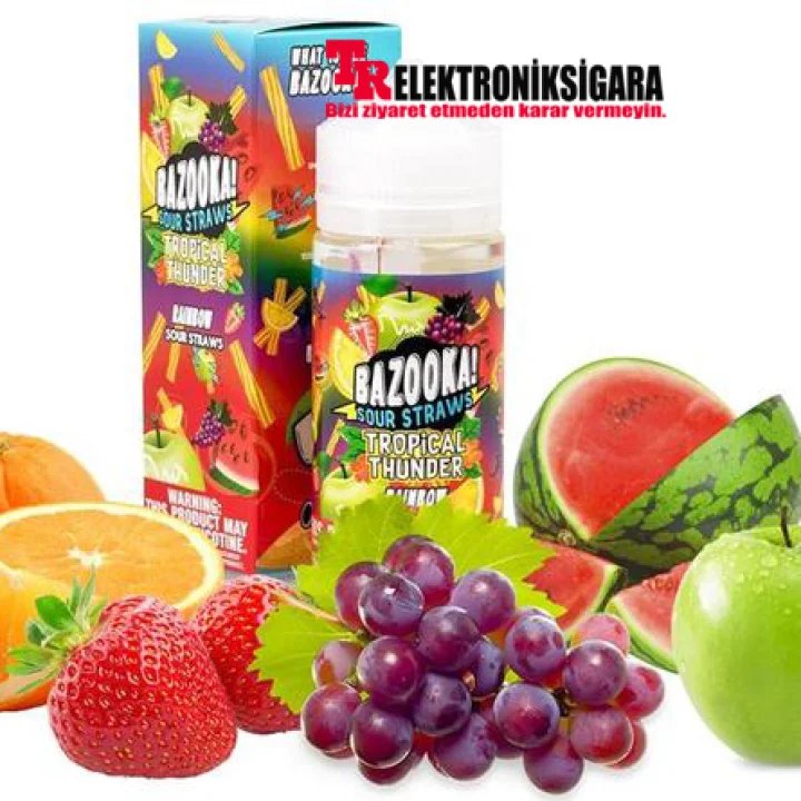 Bazooka Sour Straws Tropical Thunder premium elektronik sigara likitini solumaya başladığınızda, yeşil elma ve ekşi limon lezzetlerinin bir araya getirilmiş çabası, ağzınızı çılgınca deliriyor. Daha sonra, çilek ve kavun lezzetleri damak boyunca akıp dilinizi tatlı meyve suyuyla doyurur. Ardından ekshale dört meyve aromasını hoş ve tatlı bir sansasyon haline getirir.