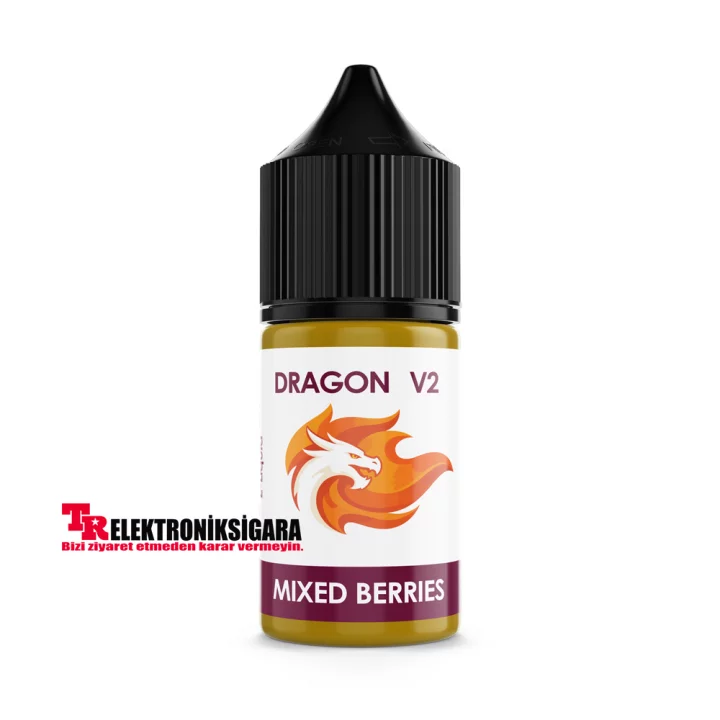 Dragon Likit V2 Mixed Berries 30ml, çilek, vişne, ahududu, böğürtlen ve yaban mersinin mükemmel uyumunu bir arada sunarak meyve severlerin favorisi olacak!