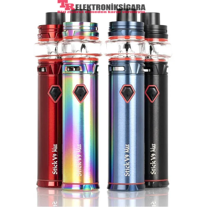 SMOK Stick V9 Max Starter Kit, hem güç hem de kullanım kolaylığı için tasarlanmış 28 mm çapında güçlü bir kalem tarzı elektronik sigara modudur. Stick V9 Max, birlikte verilen Stick V9 Max atomizerini kullanırken 60 watt'lık çıkış sağlayabilen devasa bir 4000mAh dahili batarya kapasitesine sahiptir. Stick V9 Max elektronik sigara kiti, beşgen şeklinde basit bir düğme tasarımına sahiptir. Stick V9 Max, birlikte verilen mikro USB kablosuyla mikro USB bağlantı noktası üzerinden 5 volt 1 amper ile şarj edilir(Bilgisayar-Powerbank gibi..). SMOK Stick V9 Max elektronik sigara ile ayarlarda wat miktarı ayarlamaya gerek yoktur.