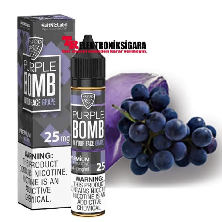 VGOD premium likitten 'dan Salt Nikotinli Purple Bomb'ı içinize çekerken, taze toplanmış tatlı üzümlerin tadı damak tadınızı dolduruyor, bu üzüm aromasından dizlerinizin dibinde eriyor olacaksınız. Bu pod mod esigara likiti, her nefeste üzüm ısırır gibi tadı veren sulu üzüm aromasıyla sizi şaşırtacak.